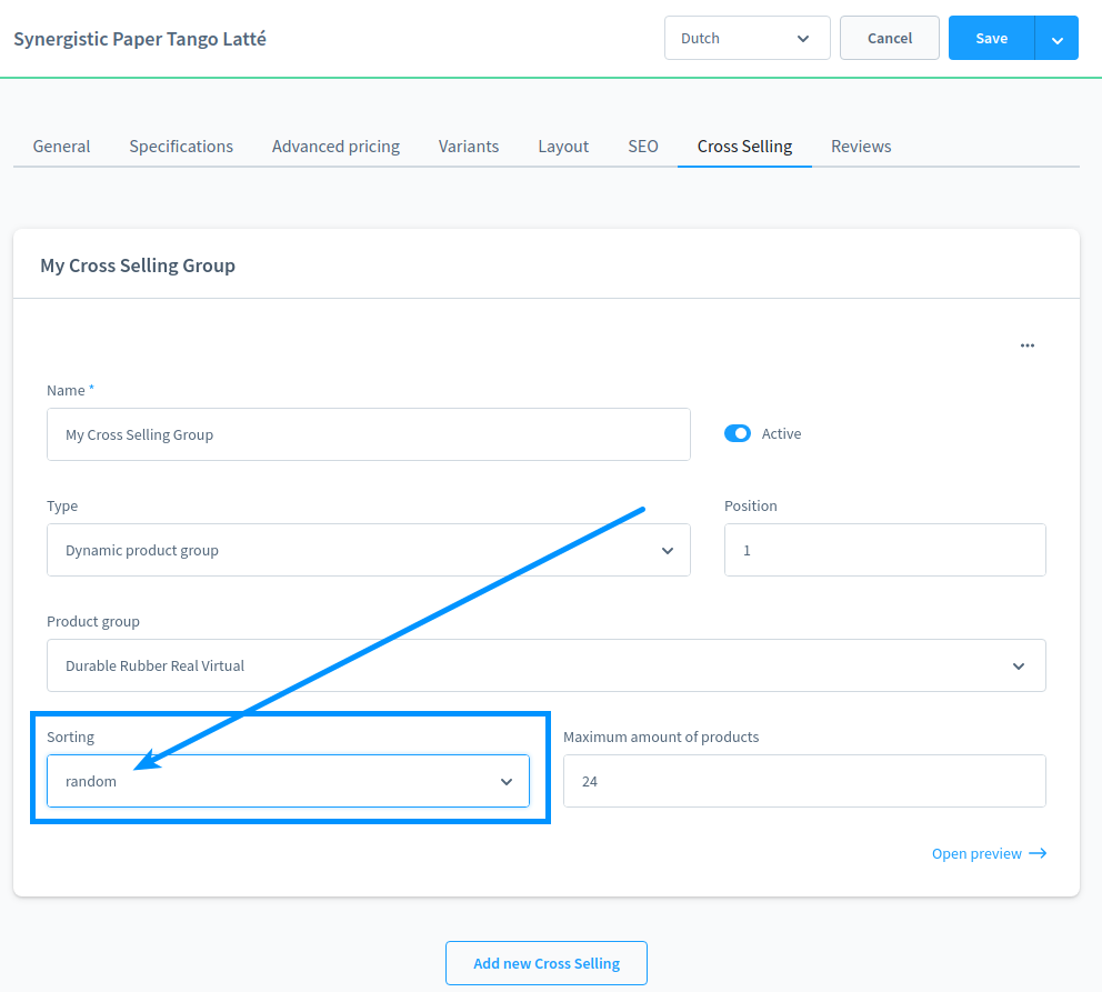 Sort by random (random order) for Cross Selling, Dyn. Product Groups and Categories